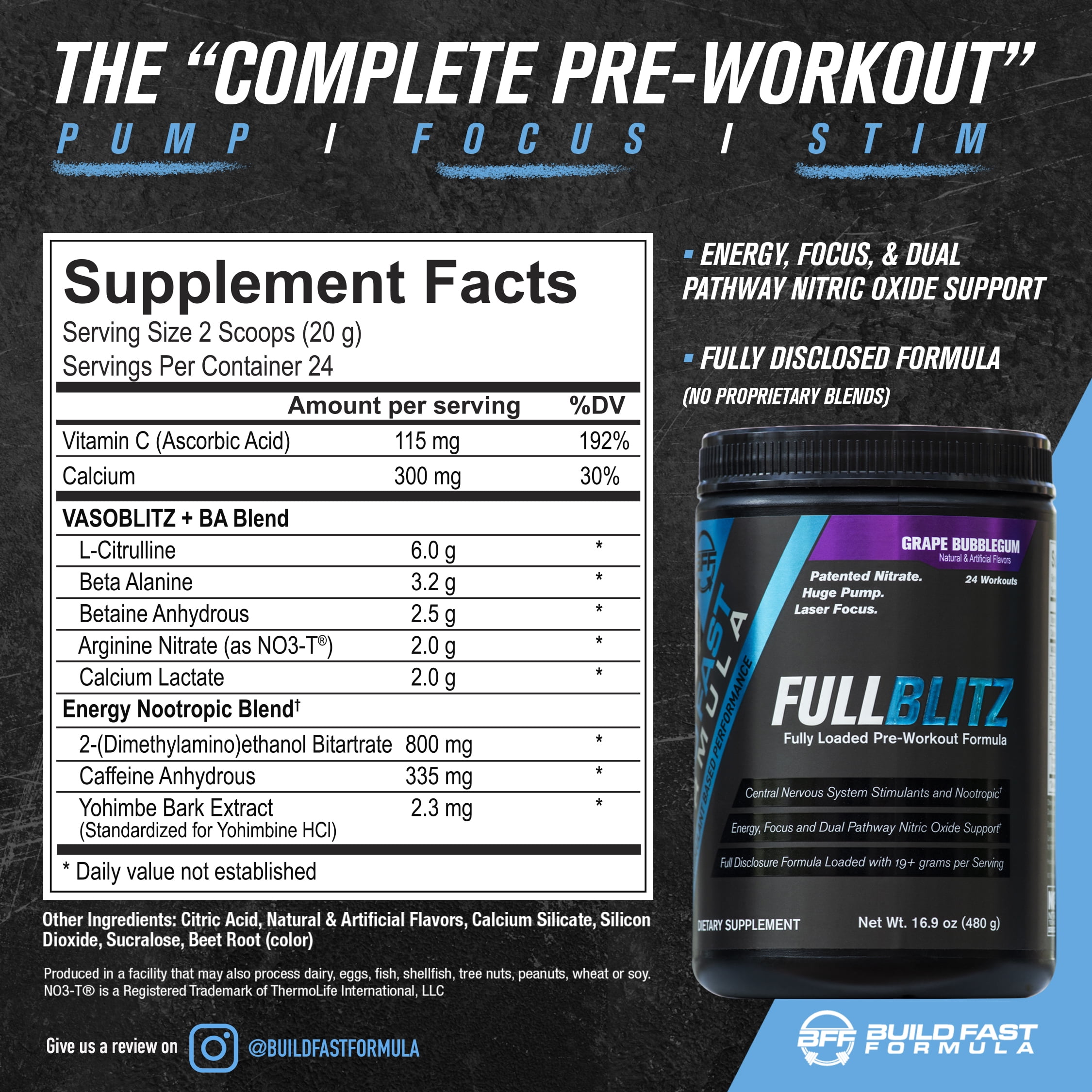 Fullblitz By Build Fast Formula Fully Loaded Pre Workout Energy Booster Plus Nootropic Blend Nitric Oxide Boosting Supplement For Increased Energy Focus And Muscle Pump Rainbow Candy Walmart Com